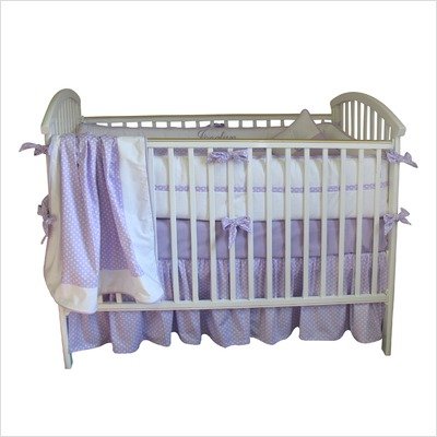 Jocelyn Crip Bedding Collection Size: 4 Piece Set with Musical Mobile Features: -3 Piece set includes zipper bumper, dust ruffle and sheet. -3 Piece blanket combo includes dust ruffle, blanket and sheet. -4 Piece set includes zipper bumper, dust ruffle, sheet and blanket. -4 Piece set with musical mobile includes zipper bumper, dust ruffle, sheet and blanket. -Material: 100pct Cotton. -Bumper is slip covered with zipper -Bumper includes in and out split in little white pique / flange and ties in fun dot, piping in matisse lavender. -Dust ruffle has 16'' gathered in fun dot lavender. -Sheet is pinpoint lavender color. -Blanket has windowpane center in fun dot, outer panels in little white pique and piping trim in matisse lavender reverse to white flannel. -Contour changing pad is fun dot lavender color. -Pillow has envelope style with button little pique white and matisse lavender with button in fun dot. -Valance is fun dot lavender color. -Musical mobile has combines fabrics, hanging pieces in posies and hearts. -Yardage has standard grade.