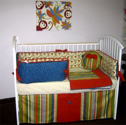 4 Piece Set with Mobile BeBe Chic Monkey Business Collection Baby Crib Bedding Set Feature