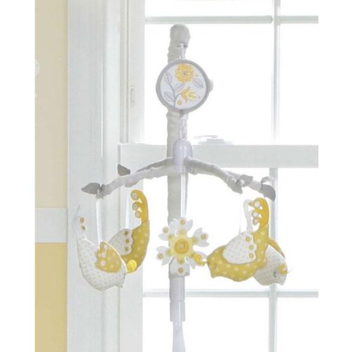 Plush Sweet Sunshine Birds will rotate and sooth as Brahms Lullaby plays. Fabric covered armature and Music Box make the mobile coorinate perfectly with your nursery. Adjustable attachment fits most crib formates.